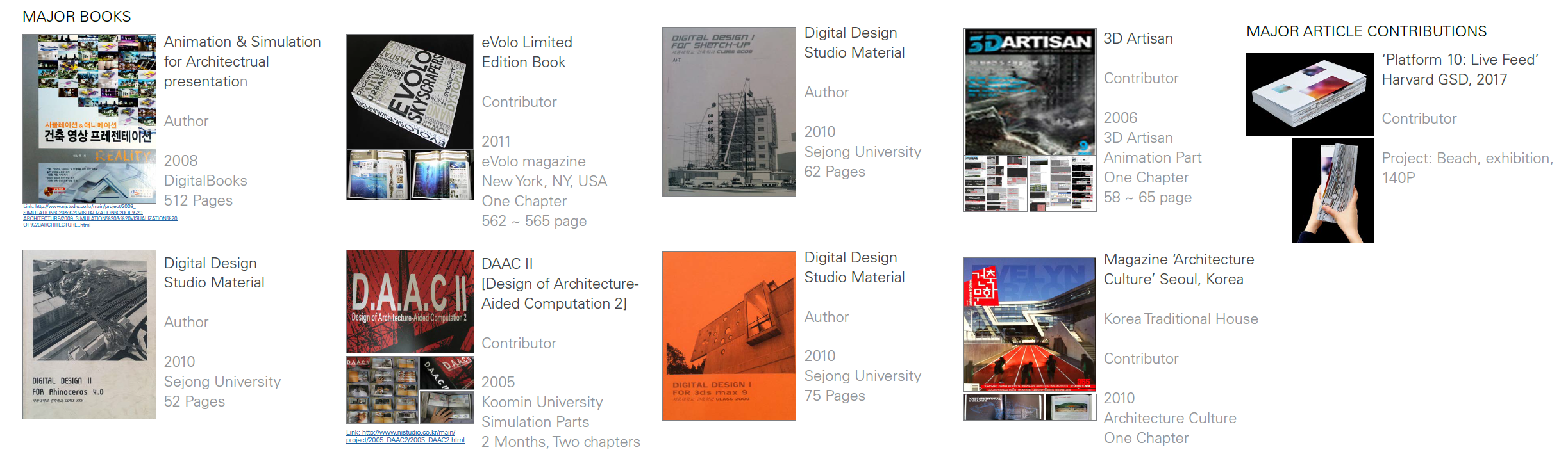 2010 Jan Tutorial, Lee, Namju: ‘Digital Design Studio I, II’, three books, Sejong